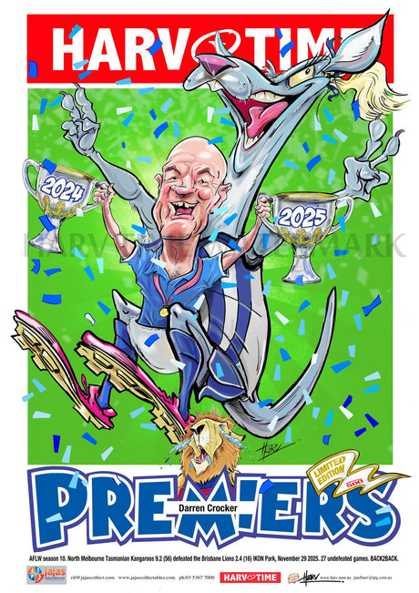 North Melbourne Tasmanian Kangaroos 2025 AFLW Premiers, Harv Time Poster