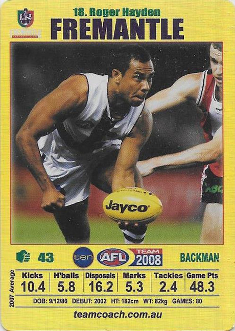 Roger Hayden, Gold card, 2008 Teamcoach AFL